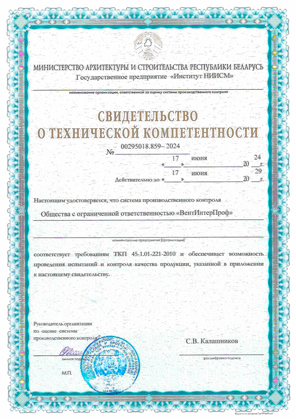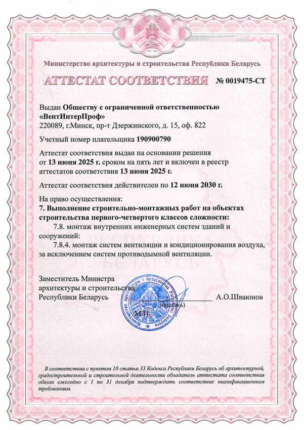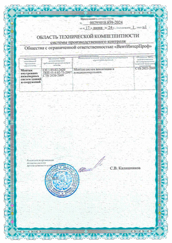 Свидетельство о технической компетентности (сертификат качества работ). Монтаж внутренних инженерных систем зданий и сооружений: монтаж систем вентиляции и кондиционирования воздуха