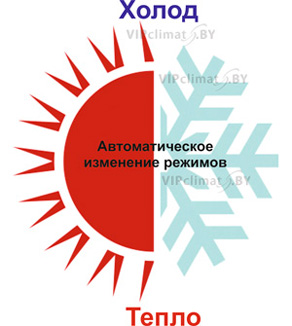 Когда выбран режим AUTO кондиционер в зависимости от температуры воздуха в помещении автоматически начинает работать в режиме охлаждения или нагрева, создавая комфортные условия для пользователя.