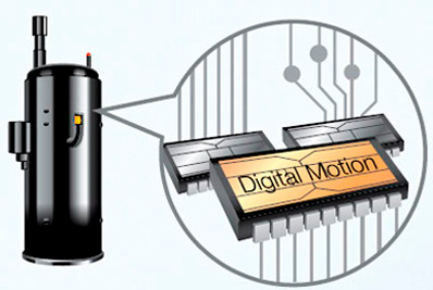 Технология интеллектуального управления компрессором Digital Motion устраняет низкочастотные вибрации, стабилизирует токи питания, а так же производит полную диагностику сплит-системы. Эта технология существенно повышает эффективность использования кондиционера и увеличивает его эксплуатационный срок.