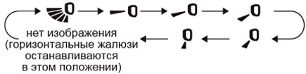 , можно задать положение вертикальных жалюзи в следующих позициях: