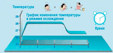 - Температура внутри помещения автоматически повышается (при охлаждении) или понижается (при нагревании). В режиме сна при работе на охлаждение после первого часа работы заданная температура автоматически повышается на 1°С, после второго часа еще на 1°С. Далее заданная температура остается без изменения. В режиме сна при работе на обогрев после первого часа работы заданная температура автоматически понижается на 1°С, после второго часа еще на 1°С. Далее заданная температура остается без изменения.