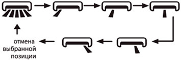 Угол горизонтальных жалюзи внутреннего блока устанавливается с пульта ДУ в 5 направлениях + автоматическое качание: