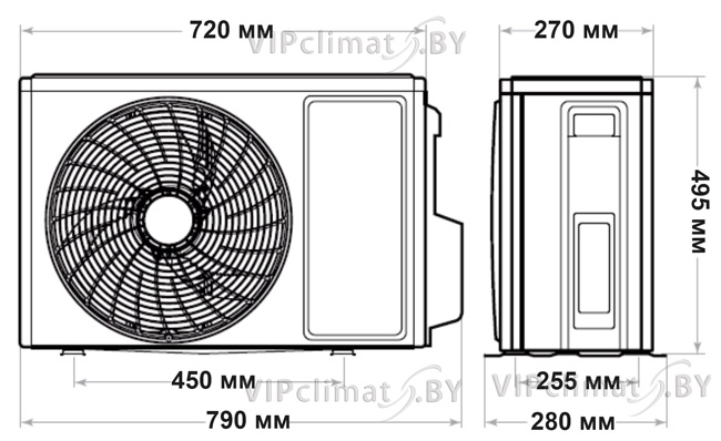 Наружный блок габариты: ШхГхВ, мм 720х270х495