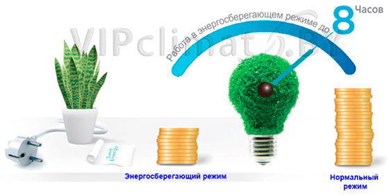 В режиме обогрева при одновременном нажатии кнопок TEMP и TIMER на пульте ДУ включается или отключается функция «Экономный обогрев». При включении данного режима на дисплее пульта отображается индикация «8°С».