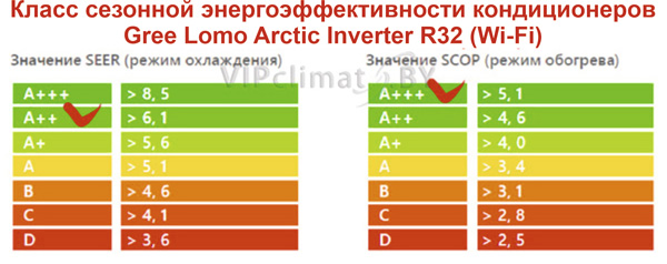 Благодаря использованию фреона R32 кондиционеры Gree Lomo Arctic Inverter R32 (Wi-Fi) имеют более высокий класс сезонной энергоэффективности A+++ (обогрев), чем у R410A. Работая на R32, сплит-системы потребляют меньше энергии при экстремальных температурах снаружи.