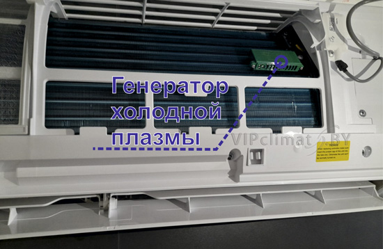 «Холодная» плазма успешно выполняет роль электронного фильтра, не требующего обслуживания. Он включается/отключается с пульта ДУ кондиционера.