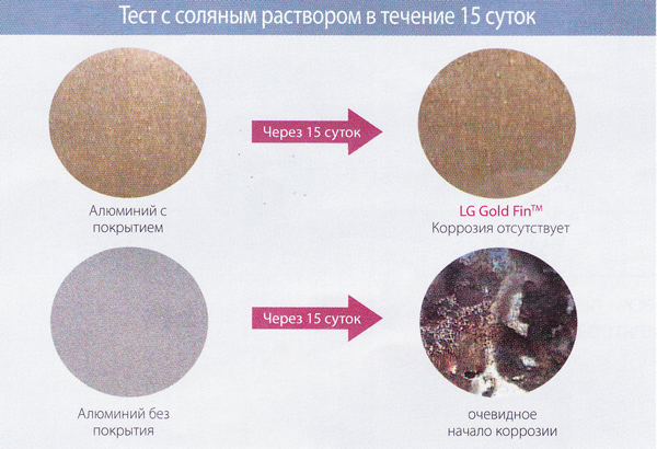 Поверхности теплообменников кондиционеров LG имеют специальное антикоррозийное покрытие аллюминевого оребрения. Это предохраняет их от коррозии и позволяет значительно увеличить срок службы тплообменника без изменения его рабочих характеристик.